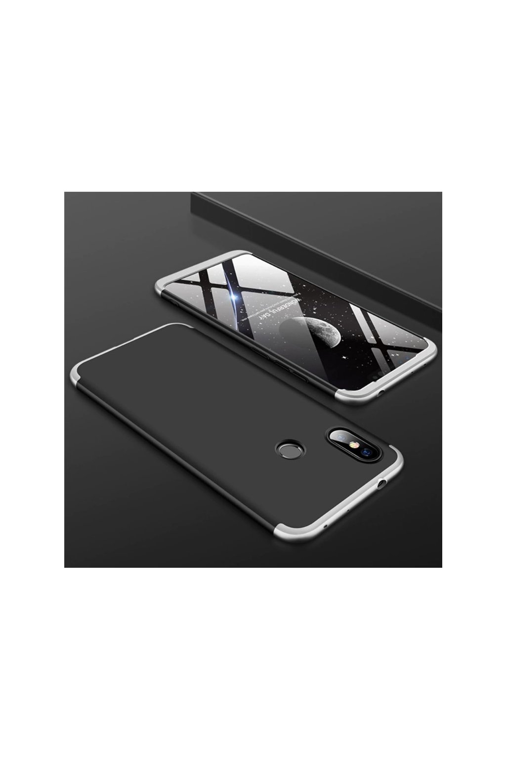 360 obojstranný kryt na Xiaomi Redmi Note 7 - čierno-strieborný