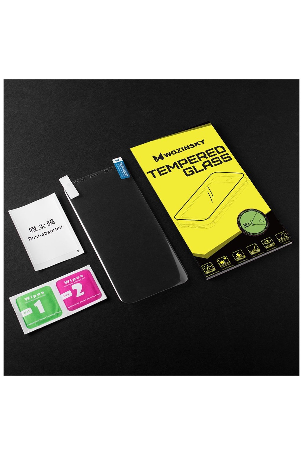 Obsah balenia: 1 ks Fólia pre ochranu displeja + 2 ks čistiacich handričiek (mokrá a suchá) + odstraňovač prachu.