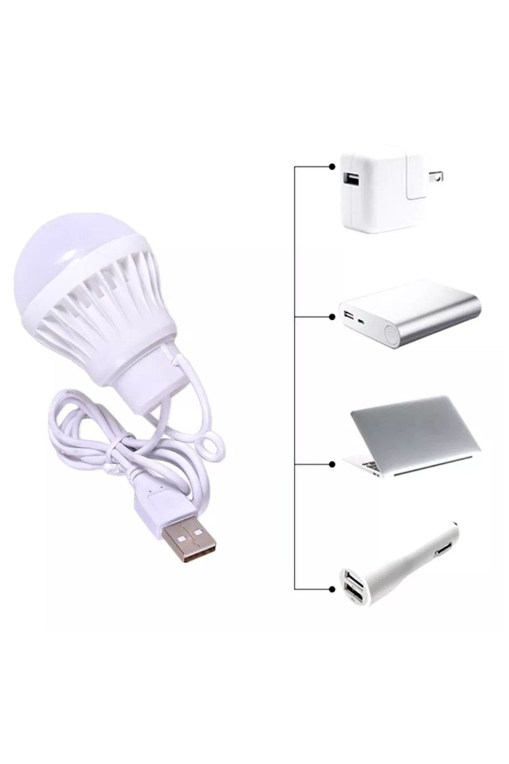 Prenosnú LED žiarovku, ktorá je napájaná cez USB kábel, ocení každý, kto sa na dovolenke, v kempe alebo aj doma nedostane k elektrickej zásuvke. Žiarovka má výkon 3 W a poskytuje jasné biele svetlo. Žiarovku možno pripojiť k akémukoľvek zariadeniu s portom USB, napr: