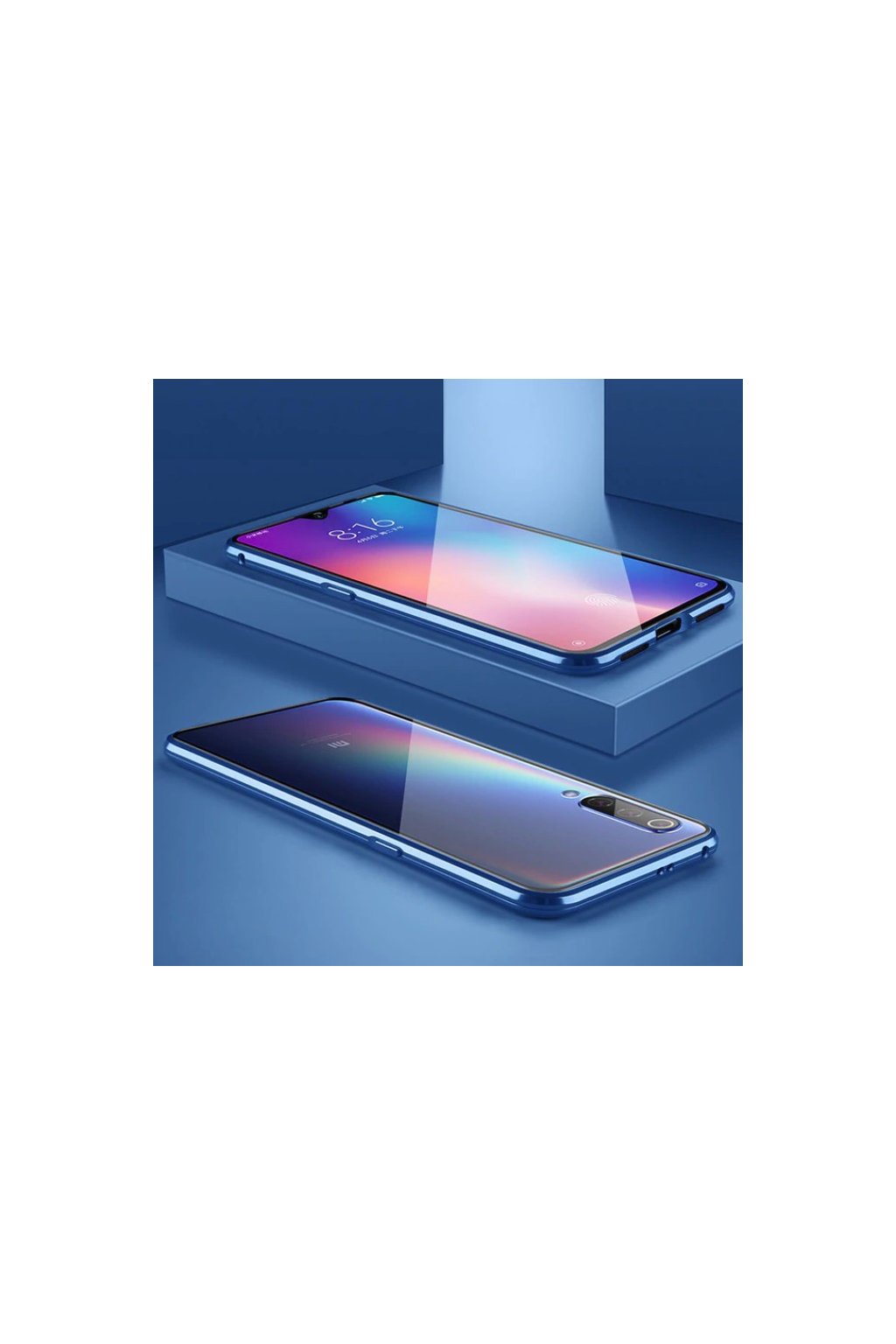 Magnetický obojstranný kryt s tvrdeným sklom na Huawei P30 - modrý
